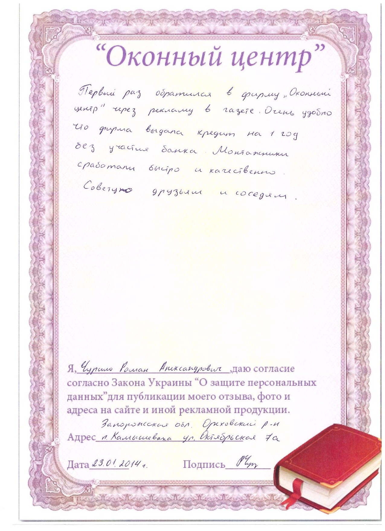 Отзывы клиентов о пластиковых окнах в Запорожье и Мелитополе, входных дверях в Запорожье, о работе компании "Оконный центр" в Запорожье, Мелитополе, о работе монтажников, менеджеров, отделов логистики и рекламаций. Здесь находятся реальные отзывы реальных клиентов компании "Оконный центр" с фамилиями, адресами и фотографиями (тех, кто согласился на фото). Оставляйте свои отзывы на нашем сайте как положительные так и отрицательные, ведь они помогают вовремя устранять проблемы и развиваться дальше нашей компании в правильном направлении.
