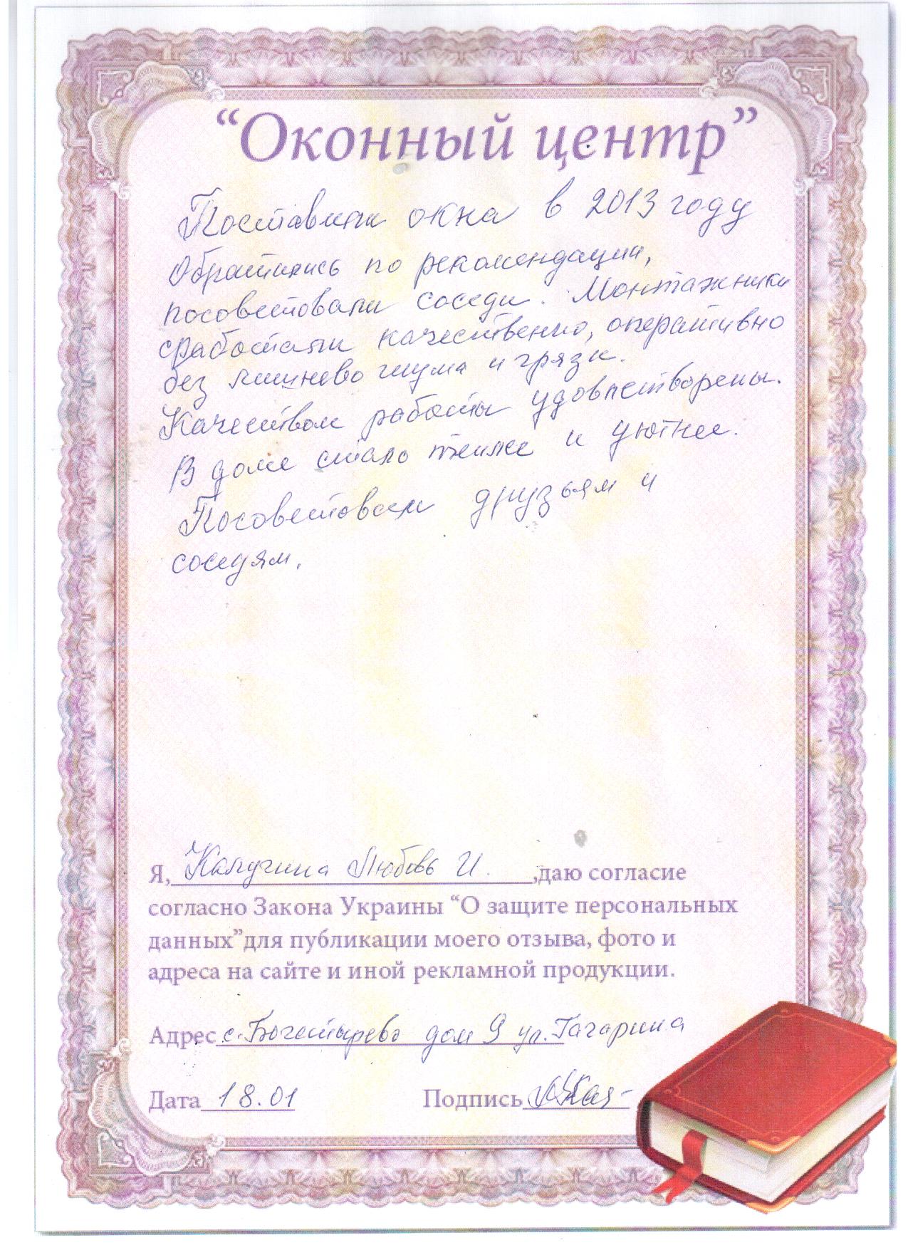 Отзывы клиентов о пластиковых окнах в Запорожье и Мелитополе, входных дверях в Запорожье, о работе компании "Оконный центр" в Запорожье, Мелитополе, о работе монтажников, менеджеров, отделов логистики и рекламаций. Здесь находятся реальные отзывы реальных клиентов компании "Оконный центр" с фамилиями, адресами и фотографиями (тех, кто согласился на фото). Оставляйте свои отзывы на нашем сайте как положительные так и отрицательные, ведь они помогают вовремя устранять проблемы и развиваться дальше нашей компании в правильном направлении.