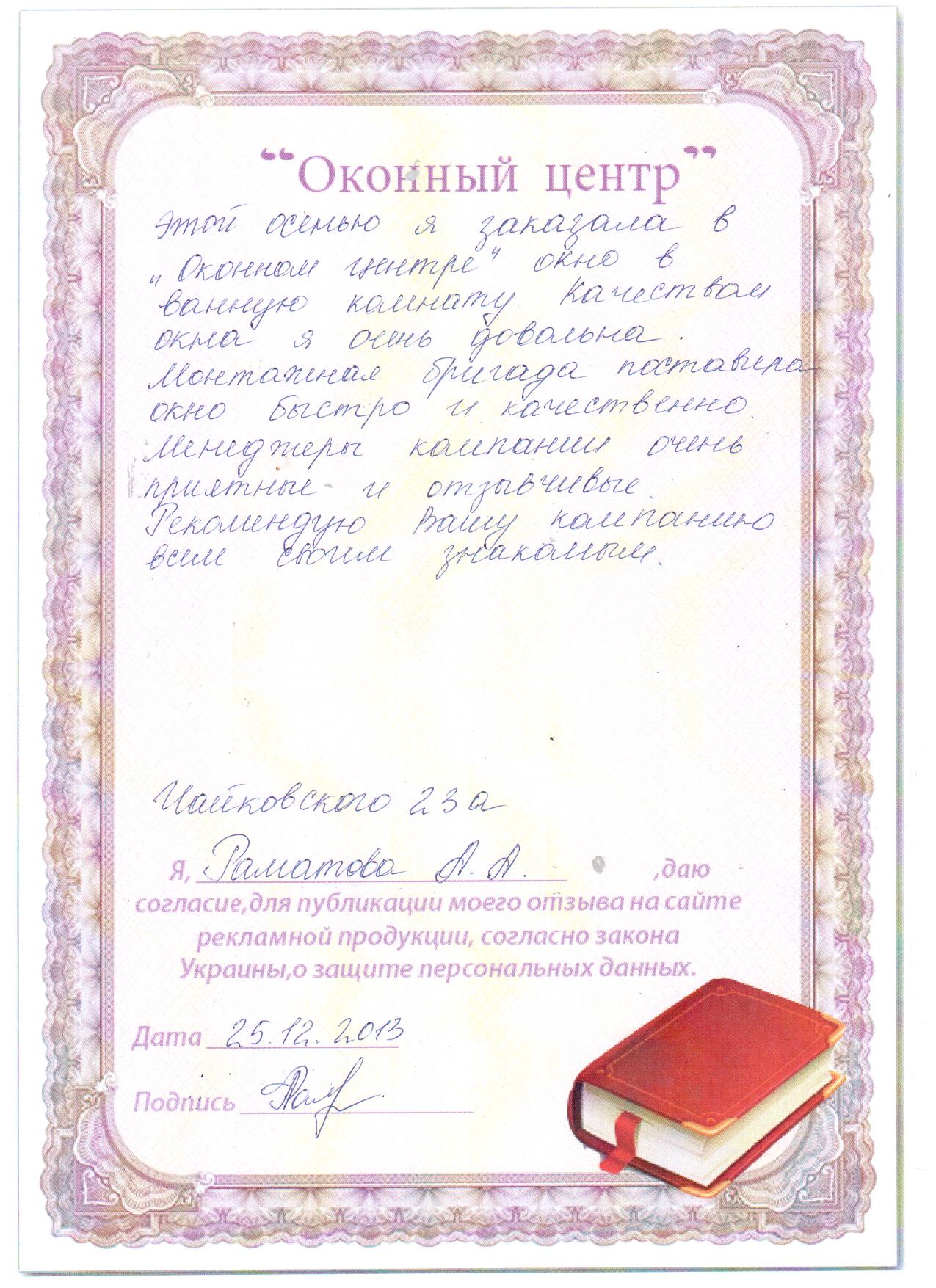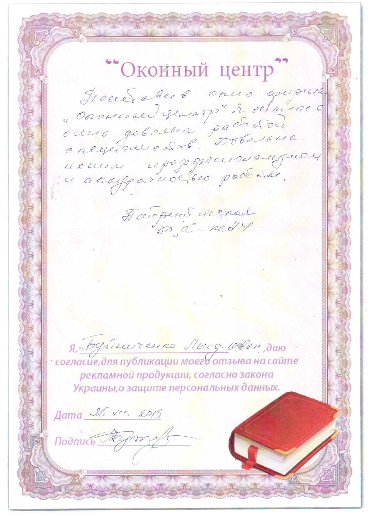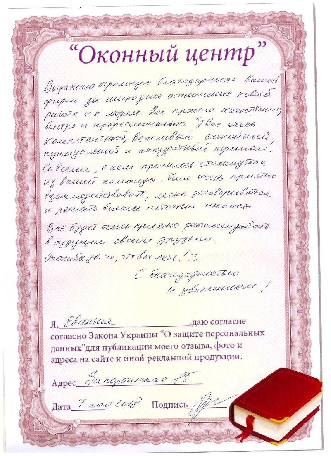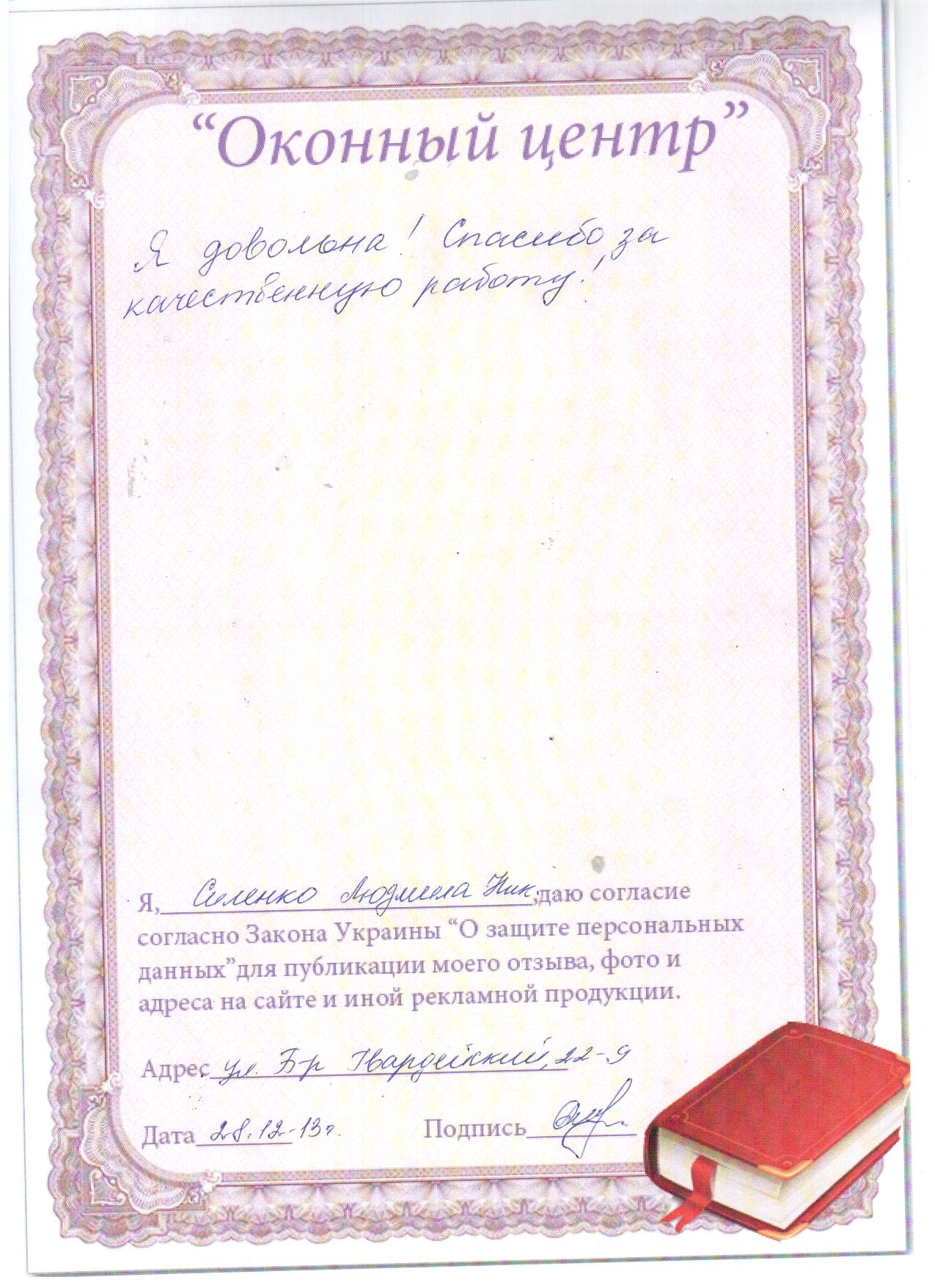 Выражаю свою благодарность сотрудникам «Оконного центра» за отличную работу, начиная с консультации, заканчивая своевременной качественной установкой. Спасибо менеджеру Ирине, что она вошла в мое материальное положение. При этом предоставила рассрочку на выгодных условиях. С наилучшими пожеланиями в 2018 году, побольше заказов и приятных клиентов.